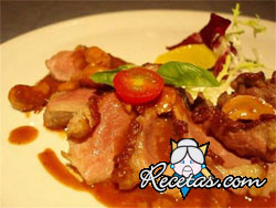 Sellar en una sartén con mantequilla. Quitar los magrets e incorporar el vinagre a la sartén.