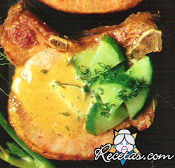 Mezclar la crema agria con la mostaza y calentar suavemente; añadir un poquito de eneldo.