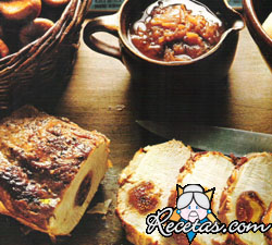 Perforar el carré a lo largo y mecharlo con los dátiles descarozados y con higos secos en trozos.