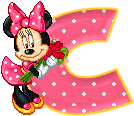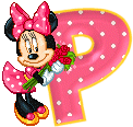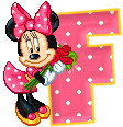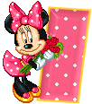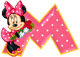 Alfabeto animado de Minnie Mouse con ramo de rosas.