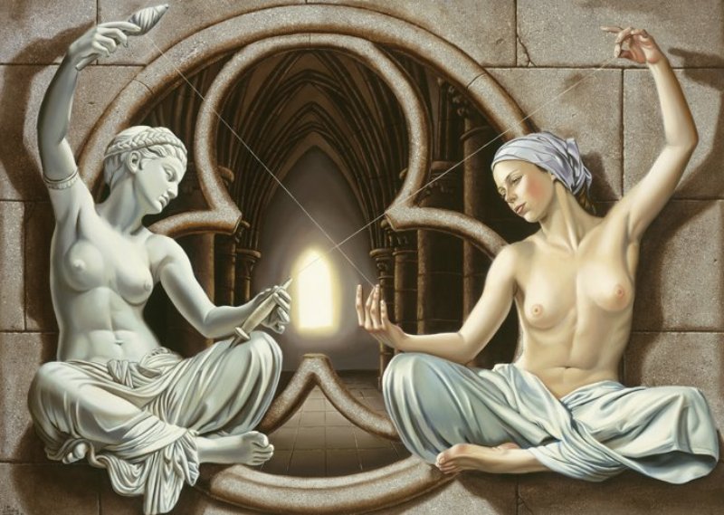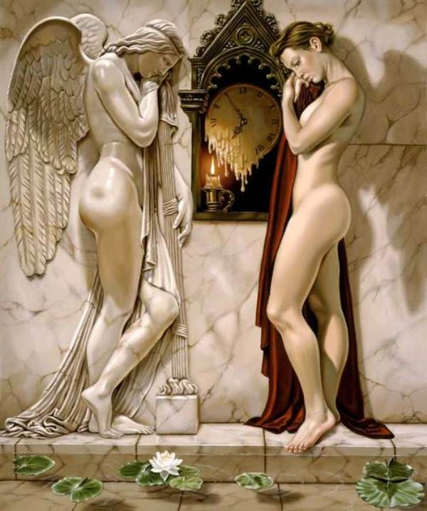 Con el transcurrir del tiempo, paso de la acuarela hacia el aceite, éste fue el recurso que le permitió acercarse con maestría a la conciencia del tiempo incrustada en la piedra, madera, espejos y todos los modelos-objetos que transfieren la retorica del Renacimiento sin moralizarlo.