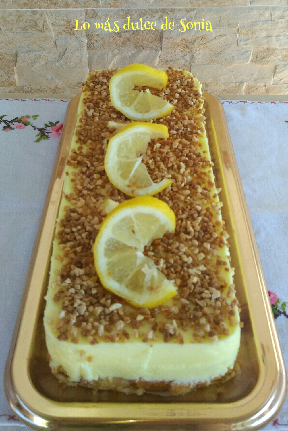 Almendra crocanti y unas rodajas de limón para decorar