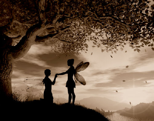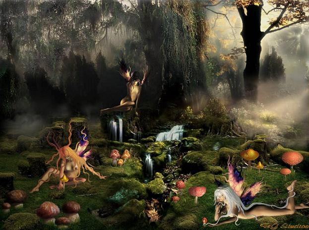 Cuando las hadas desean un lugar mágico,sólo han de dibujarlo en su mente,y el lugar pensado se materializa, surgiendo de la nada.