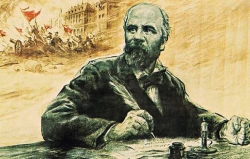 En 1871, un obrero francés que participó en la Revolución de 1848 y fue miembro del consejo de uno de los municipios y las barricadas de la Comuna de París, Eugène Pottier, escribió la letra de la que sería "La Internacional", el himno de los trabajadores de todo el mundo. Pottier había organizado a los diseñadores de telas (éste era su oficio, además de escritor) incorporando su gremio a la AIT (Primera Internacional) desde 1864. Luego de la derrota de la Comuna se exilió en Inglaterra y EEUU, pero volvió a Francia en 1880. En 1886 compuso una canción en honor a la Comuna. Las estrofas de aquel poema se convirtieron en la letra de "La Internacional", la cual fue usada como el himno de la Primera Internacional en sus últimos años de actividad (1871-1876) y fue luego adoptada por las Internacionales que le siguieron y por el movimiento socialista en general. Murió en 1887, sin escuchar cantar "La Internacional". A su entierro acudió una manifestación obrera encabezada por la bandera roja. En 1908 se le levantó un monumento en el cementerio Père-Lachaise de París, donde fueron fusilados muchos comuneros. “La Lira de los Trabajadores” le encargó la musicalización de la poesía de Pottier a P. Degeyter en 1888. Durante algunos años sólo fue conocida por los obreros franceses. En 1892 fue aprobada por la II Internacional como el himno oficial de los trabajadores. Luego la letra fue modificada según el país y la corriente política que la cantara (anarquistas, socialistas, comunistas).