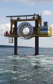 Hay muy pocas turbinas que producen energía en lasprofundidades de las aguas aprovechando lascorrientes,en nuestro pais hay una en La Rioja y otra en Formosa y la mayoría de ellas funcionan como molinos subacuaticos, con sus aspas girando en función de la dirección de los flujos oceánicos