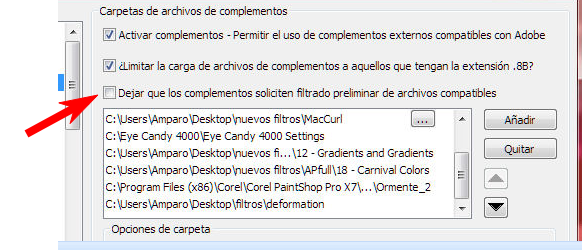 luego buscas tu carpeta de filtros y fijate bien porque el programa trae carpeta de filtros y si hacemos otra carpeta tenemos