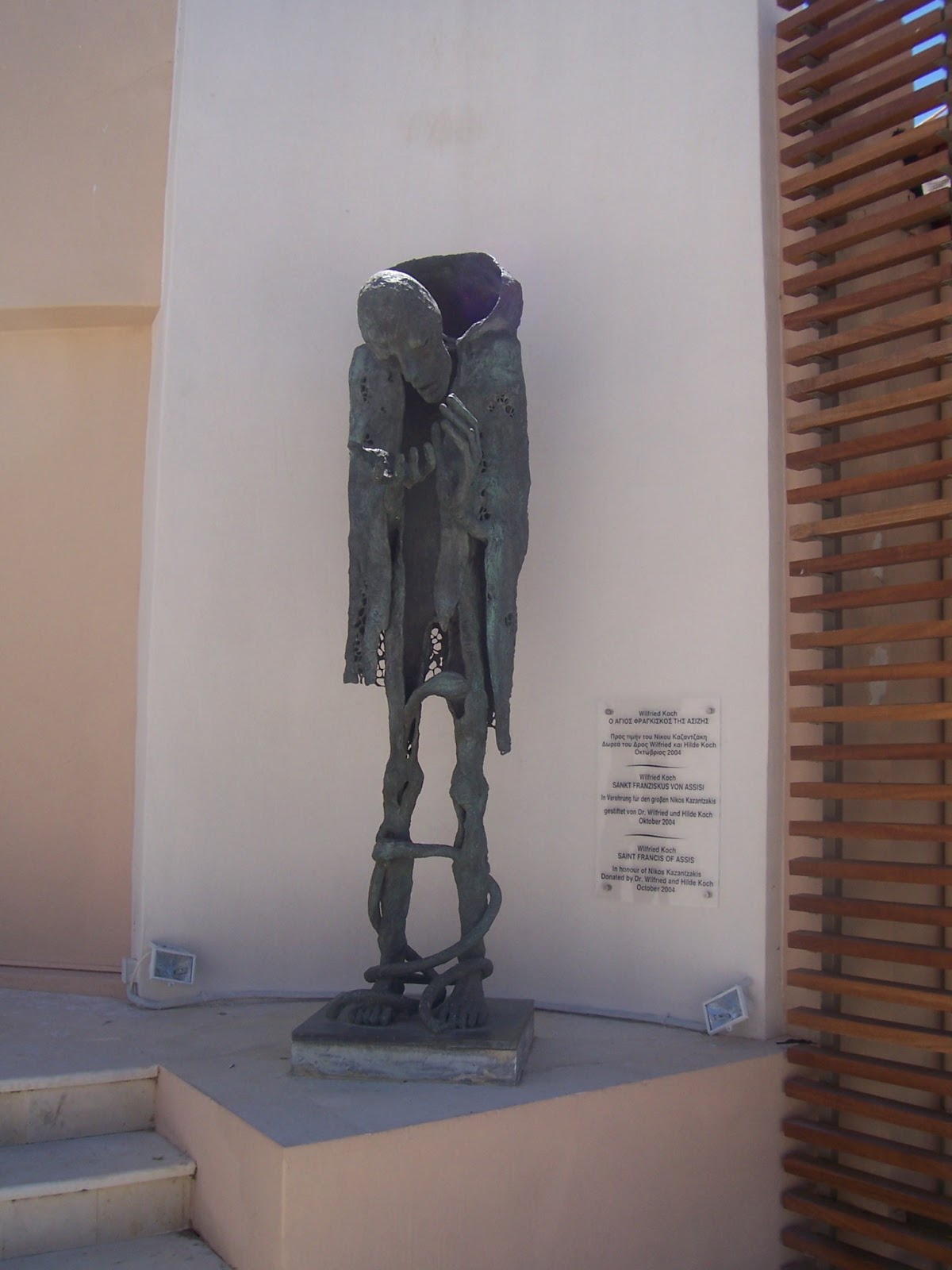 Estatua de San Francisco de Asís, en referencia a la novela de Kazantzakis El pobre de Asís |