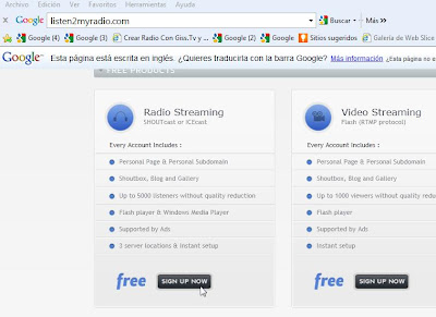 http://listen2myradio.com/ tenemos que registrarnos... (veremos esta ventana), en