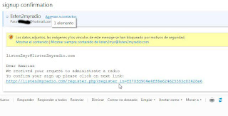 Si todo ha ido bien, recibimos este mensaje, para terminar nuestro registro hemos recibido un correo en nuestra cuenta para activar nuestra cuenta en listen...