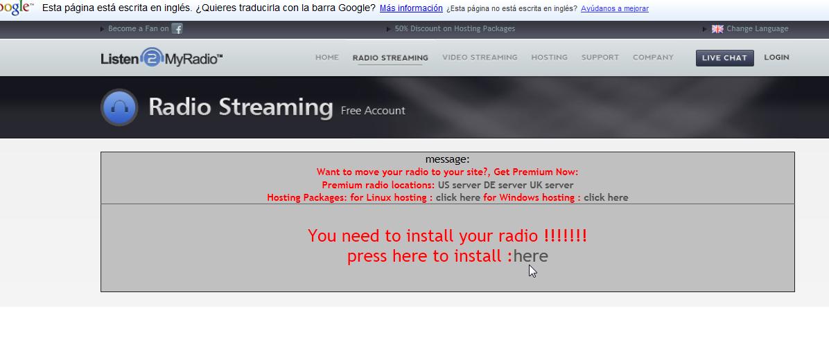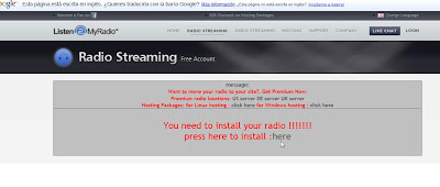 Ahora ya podemos crear nuestra radio, para ello nos pide que instalemos (en el servidor, no en nuestro PC) la radio, hacemos clic en here como vemos en la captura, para que empiece la instalación....