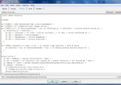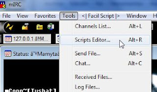 Ahora abrimos el script, desde el mirc y vamos a herramientas o tools dependiendo del idioma de nuestro script y en Scripts Editor (editor de scripts)