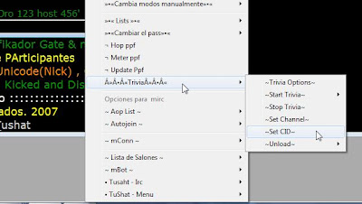 Volvemos a la pantalla del script, y de nuevo al menú de la trivia, esta vez hacemos clic sobre Set CID....