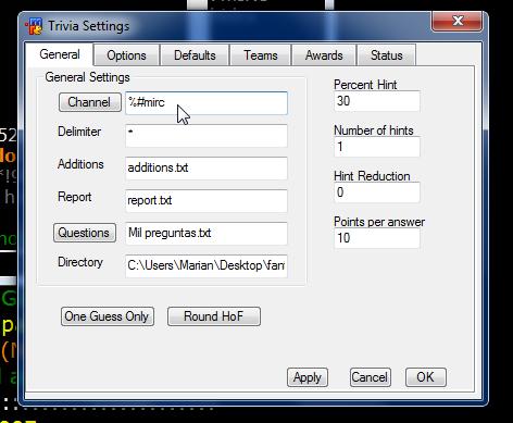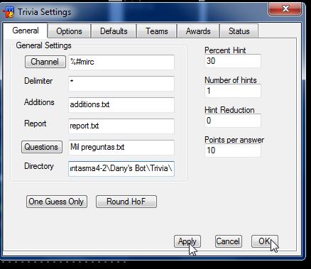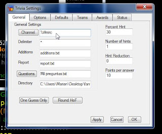 Ahora veremos que en Questions, esta Mil preguntas (el cuestionario que hemos escogido) y debajo el directorio donde se encuentra, ahora clic en ok y en Apply....