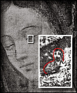 Según varios estudiosos y hombres de ciencia que han inspeccionado la imagen se pueden ver reflejadas, en ambos ojos y en la ubicación precisa en que se reflejarían en un ojo humano vivo, algunas figuras que han sido extensivamente analizadas y parecen corresponder a la forma y tamaño de figuras humanas localizadas enfrente de la imagen.