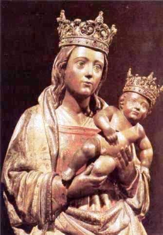 Alfonso VI conoce la existencia de una Imagen de la Santísima Virgen, escondida por los cristianos siglos atrás, el Monarca hizo -al parecer- voto de buscarla incansablemente para restituirla al culto de los fieles, si Dios le concedía la victoria sobre los Sarracenos, y lograba tomar la Ciudad. Pero, una vez liberada ésta y no obstante sus pesquisas, no lograba localizar el sitio donde la Imagen estaba oculta. Por ello, y en su deseo de que la Virgen Santa María fuese venerada hasta tanto se lograse hallarla, mandó pintar una Imagen, inspirándose en los rasgos que la tradición atribuía a aquélla y, no se sabe si por el deseo del artista o por gusto del propio Rey casado en aquel momento con Doña Constanza, hija de Enrique I de Francia-, pintaron en su mano una flor de lis.