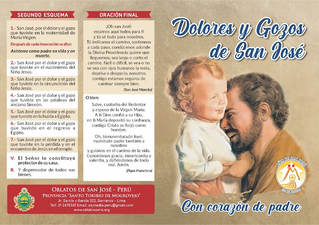 Modelo de celo, de trabajo constante, de fidelidad silenciosa, de paternal solicitud, obténme esas bendiciones, para que pueda crecer cada día más en ellas y así asemejarme día a día al modelo de la plena humanidad: EL SEÑOR JESÚS.