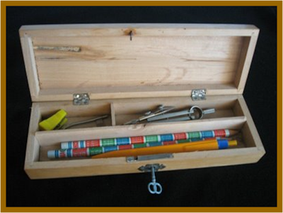 En ninguna escuela podía faltar la regla, compás, escuadra y cartabón de madera, así como el globo terráqueo.