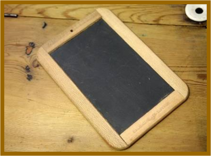 El pizarrín tampoco faltaba. Me encantaban las tizas de colores.
