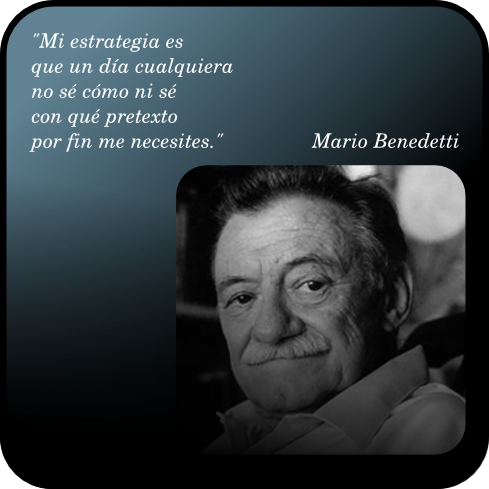 Un día como el de hoy, pero del año 2009, lloraron las letras tras el fallecimiento del escritor y poe ta uruguayo, Mario Benedetti, integrante de la Generación del 45. Su infancia y juventud estuvieron plagadas de dificultades económicas. A los 4 años se trasladó con su familia a la capital. Cursó la escuela primaria en el Colegio Alemán de Montevideo y pudo completar sus estudios secundarios como alumno libre. Fue empleado contable, cajero, taquígrafo y vendedor, hasta que se inició en el oficio de periodista. Ávido lector, se convirtió en un defensor acérrimo de los valores cívicos, de la libertad y la igualdad. Fundó el semanario “Marcha” y colaboró en multitud de publicaciones. Desde 1971 se integró activamente en la coalición de izquierdas “Frente Amplio”. Tras el Golpe Militar de 1973, tuvo que huir de una dictadura que se ocupó de perseguirlo en Argentina y Perú. Pasó por México, por Cuba y por España. Fueron 10 años los que vivió en el exilio, alejado de su Patria y de su esposa, quien debió permanecer en Uruguay cuidando de las madres de ambos. Figura ilustre de la cultura uruguaya fue reconocido dentro y fuera de su país. Parte de su prolífica producción literaria, constituida por poemas, relatos, novelas, ensayos, obras de teatro, guiones de cine y crónicas de humor, fue traducida a más de 20 idiomas. Benedetti mereció lauros tan preciados como el “Reina Sofía de Poesía Iberoamericana”, el “Méndez Pelayo” o el “Iberoamericano José Martí”, entre otros. Aquel 17 de Mayo del 2009, poco después de las 18:00 horas, Mario Benedetti, uno de los poetas latinoamericanos más leídos a nivel mundial, moría en su casa de Montevideo, a los 88 años de edad.