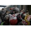familia procedente de Ucrania llega a la estación central en Budapest, Hungría.