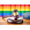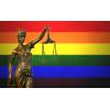 La diosa de la Justicia con la bandera arcoíris