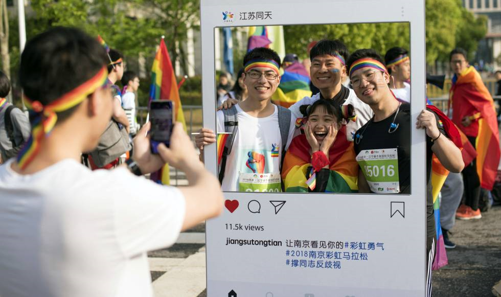 Manifestación a favor del colectivo LGTB en Nanjing, el domingo. JIANGSU TONGTIAN VOLUNTEER GROUP