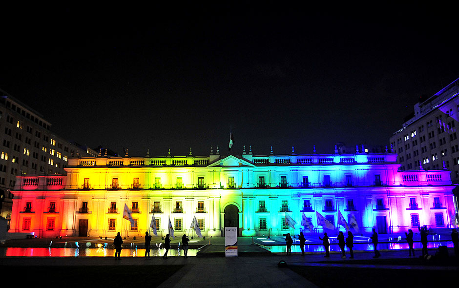 La Moneda, el palacio presidencial de Chile, fue iluminado con los colores de la bandera LGBT