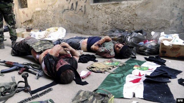 Cuerpos de supuestos rebeldes en el barrio Al-Hajar Al-Aswad, al sur de Damasco, Siria, el 19 de septiembre de 2012.