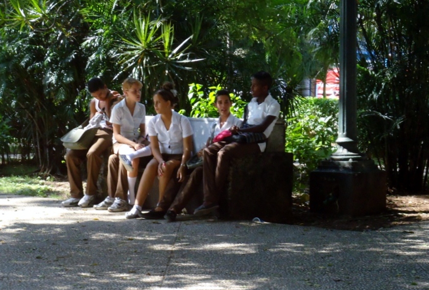Jóvenes en un parque de El Vedado, Ciudad de la Habana,fotos del autor de la nota.