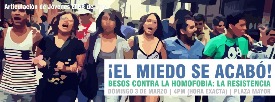 Segundo aniversario de la primera besada El 12 de febrero se cumplió precisamente el segundo aniversario de la brutal intervención policial que tuvo lugar para dispersar la primera acción “Besos contra la Homofobia”, que dio lugar a una respuesta de parte de los activistas y derivó en dos horas de escaramuzas por el centro de la capital peruana. El hecho, que mereció la condena internacional y obligó a las autoridades a pedir reticentes disculpas, es considerado hoy un punto de inflexión en la lucha a favor de los derechos LGTB en el Perú. Es por eso que el 12 de febrero se considera ya en este país el Día de la Dignidad LGBT, que ya el año pasado fue conmemorado por primera vez (de forma pacífica entonces). Este año 2013, sin embargo, la conmemoración convocada el 23 de febrero volvió a ser accidentada. Es importante notar que una generación nueva de activistas, jóvenes y universitarios en su mayoría, ha tomado el liderazgo del movimiento LGTB peruano y le ha dado nuevos aires. Treinta años esperando cambios que nunca se dieron son demasiados, y los jóvenes LGTB peruanos no están dispuestos a seguir esperando.