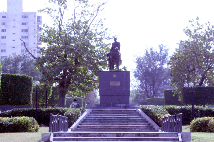 La estatua fue erigida el 26 de junio de 1921 por suscripción popular, con una contribución máxima de 20 centavos. Para realizarla se había contratado al escultor italiano Giovanni Nicolini, quien también por voluntad popular esculpió años más tarde la de José Miguel Gómez, que fue colocada el 18 de mayo de 1936 en el monumento a su memoria -restaurado hace relativamente poco tiempo- que preside la avenida a la altura de la calle 27. Contrastantemente, los transeúntes que pasan frente al Hotel Presidente pueden observar el pedestal que sufrió el vandalismo castrista, en el que solo quedaron los zapatos de la estatua.