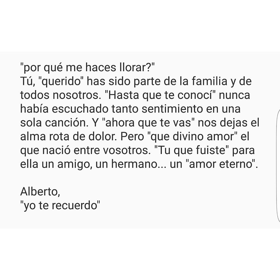 No obstante, entre todos los mensajes de afecto, destaca uno por encima de todos. Se trata de Isabel Pantoja, su gran amiga de toda la vida, quien ha compartido a primera hora de la mañana sus más sinceras condolencias: «Alberto, en este momento mi corazón se paró con el tuyo. ¿Por qué no me has esperado? Cielo mío, jamás sabrás cómo te quiero... ¡¡Con toda mi alma!! Mis respetos y mi admiración. Como tú bien dices, gracias por haber nacido en el mismo siglo y haber podido compartir todo contigo, como familia y artista. Mi familia y yo estamos desolados. No tenemos ánimos ni palabras ante esta inesperada pérdida de nuestro amigo Alberto. Te quiero con mi alma. Descansa cariño mío. Te ama tu comadre Isabel».