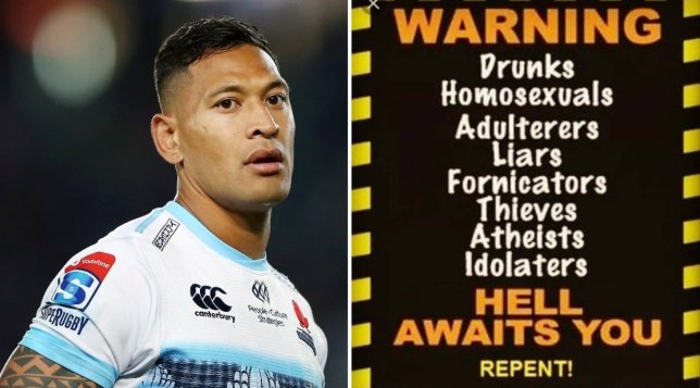 Luego está el caso de Folau. El jugador de rugby de 30 años, antes mormón y ahora cristiano evangélico, tiene un historial de comentarios homofóbicos y transfóbicos en línea. El año pasado escribió en Instagram que el plan de Dios para los homosexuales era el “INFIERNO” a menos que se “arrepientan de sus pecados”. Recibió una advertencia de parte de Rugby Australia, el organismo rector, porque divulgar esas opiniones contraviene su política de inclusión.