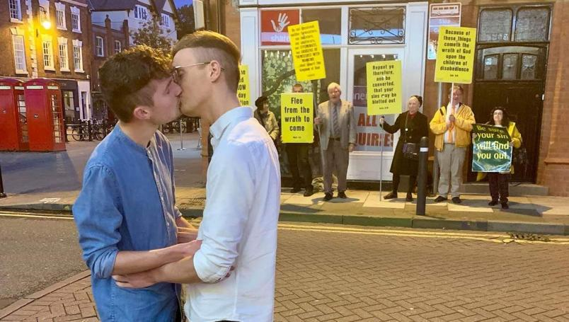 ¡Gana el amor! Se besan para acallar gritos homofóbicos de manifestantes