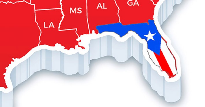 Los puertorriqueños representan actualmente el 31 por ciento de los electores hispanos inscritos en La Florida, un estado donde ellos representan casi el 17 por ciento de todos los electores inscritos. Los cubanos también alcanzan el 31 por ciento. Lo más interesante es que en 1990 los puertorriqueños representaban el 25 por ciento del voto latino en el estado, y los cubanos eran el 46 por ciento.