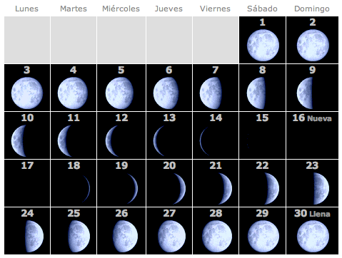 Calendario lunar Septiembre 2012