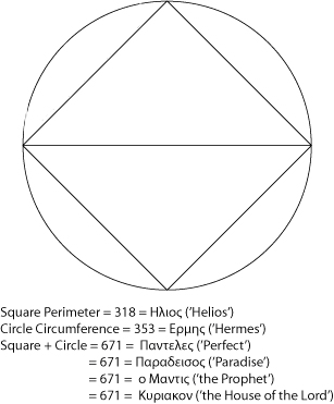 The 22:7 ratio of the Sun/Mercury synodic cycle reveals a reciprocal 7 representation of Pi. Also, Mercury’s inclination relative to the ecliptic is approximately 7 degrees. Mercury traces 22 isosceles triangles within a 7 year period, completing itself a full co-relational circle through the Zodiac at the completion of this seven year period.  The gematria of 314 = Wise Man or Magician = attributes of Mercury/Hermes/Thoth = Mercury/Hermes/Thoth 353 = Hermes 671 = SATOR mirror ROTAS 671 = Adonai 671 = AMA DEUS (love & will) 671 = ThROA = 61 x 11, Ain = 61, (nothing or zero and 11 is the number of the magical expansion) 671 = Rota = the Wheel of Fortune (22 Keys of R.O.T.A.) 671 = Athor = the Lady of the path of Daleth 671 = Yeshu Ha-Notzri (written without "ayin") why no "J" in hebrew alphabet? 671 - 176 = 495 (FOUR NINE FIVE = 144 = 9)