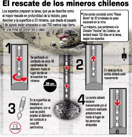 Expertos americanos de las compañías Layne Christensen de Wichita Kansas y su subsidiaria, Geotec Boyles Bros. manejaron las maquinarias y taladros que agrandaron el diámetro del túnel que llegaría al sitio donde estaban los mineros haciendo posible su rescate. Para esa labor trajeron a Jeff Hafrt de Denver Colorado, quien se encontraba perforando pozos en busca de agua en contrata con el ejército americano en Afganistán