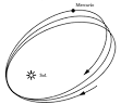 Aquí está exagerada la excentricidad de la órbita de Mercurio, para enfatizar el efecto.