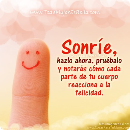 Sólo con una pequeña sonrisa, incluso forzada, notarás cómo cada parte de tu cuerpo reacciona a la felicidad… Y es que así es la vida: si tú te sientes contenta, todo tu cuerpo lo nota y responde ante este sentimiento de felicidad. Tu piel resplandece, tus ojos se llenan de un brillo especial que te hace ser más bella, más llena de ese “algo” que a los demás les gusta y les hace voltear la mirada para verte…