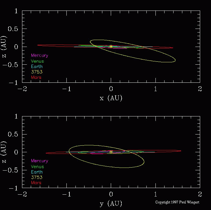 Lo antes expuesto corresponde a un artículo científico realizado por Paul Wiegert, Kim Innanen y Seppo Mikkola, publicado en la revista científica británica Nature el 12 de junio de 1997. El asteroide 3753 Cruithne fue descubierto en 1986 pero no fue hasta 1997 cuando estos científicos usaron simulaciones computacionales para entender su comportamiento. Al principio, Wiegert no podía creer en sus cálculos y pensó que era un error computacional. Al repetirlos varias veces terminó convenciéndose.