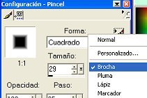 En la otra parte de configuracion del pincel, da click en el pincelito para cambiar la punta de tu pincel por "Brocha"