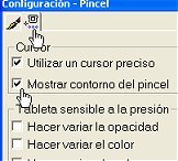 y asegurate en la capa de configuracion que tenga marcada la opcion "Mostrar contorno del pincel".