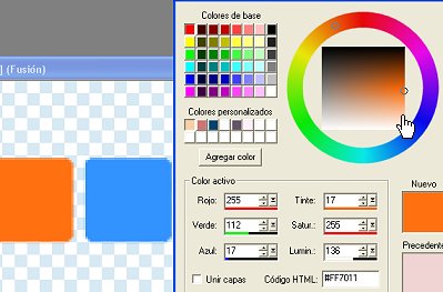 Una vez que tienes el tamaño de la punta de tu pincel, haces click sobre el cuadro de color de "Estilos" para que aparezca la barra de seleccion de colores y tomes una muestra del color que tiene el primer cuadrito, al hacerlo, notaras dicho tono de color queda marcado en la ventanita, ve hacia abajo de la misma direccion en donde quedo marcado el tono y busca un tono mas claro para dibujarlo en el centro de tu cuadrito.