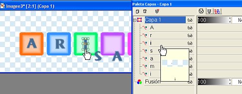 pintas la segunda letra del texto, regresas a la paleta de capas y activas la tercera