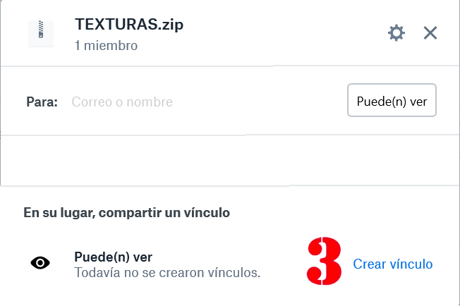 3.- En el cuadro que aparecerá seguidamente, elegimos: CREAR VINCULO; para que las personas del grupo puedan descargar el archivo.
