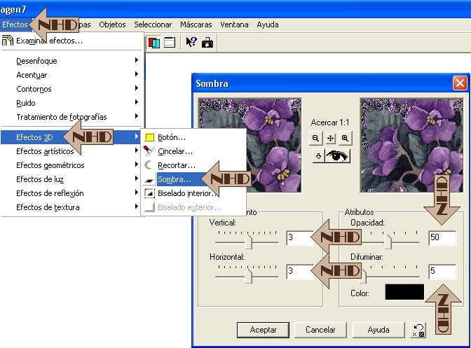 5.- Aplicar sombra con los valores de la captura.