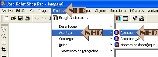4.- Efectos acentuar. Esto se debe hacer toda vez que se redimensiona o se rota una imagen, para que no pierda su definición.