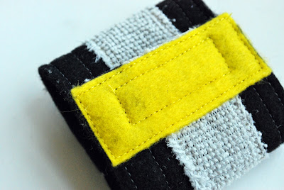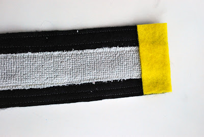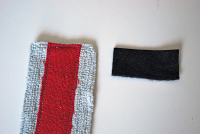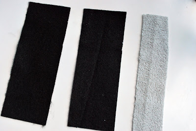 Cortar tiras de 2 manguito de fieltro negro, y una franja de la shammie gris.