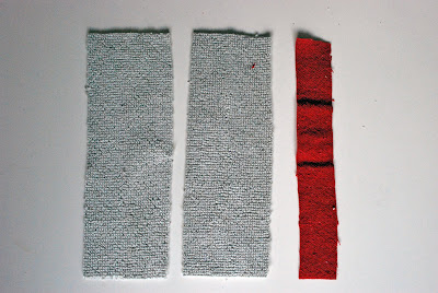 Corta una tira de la longitud de trabajo mismo paño rojo, pero de ancho 1 - 1 1 / 2 pulgadas.